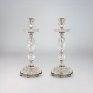 Paire de bougeoirs en cristal taillé