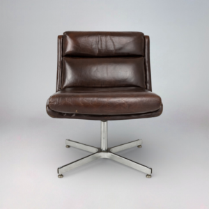 Fauteuil dont un avec ottoman, skaï et noyer d’Amérique, USA