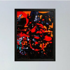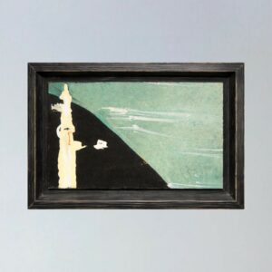 Peinture sur papier, tache colorée bordée d’un filet noir